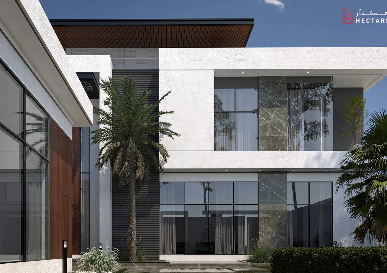 تمثل المشروع في تصميم فيلا عصرية تمزج بين الجرأة المعمارية ودفء المواد الطبيعية، لتشكل لغة بصرية متفردة. وجاء الدمج بين الكتل البيضاء والخشب الدافئ والمعدن الداكن والزجاج الشفاف ليعكس واجهة فاخرة توفر الخصوصية والأناقة معاً.